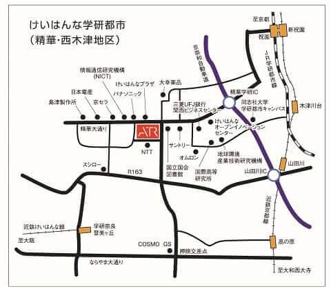 けいはんな学研都市にあるATR-Promotionsへのアクセス方法をご案内いたします